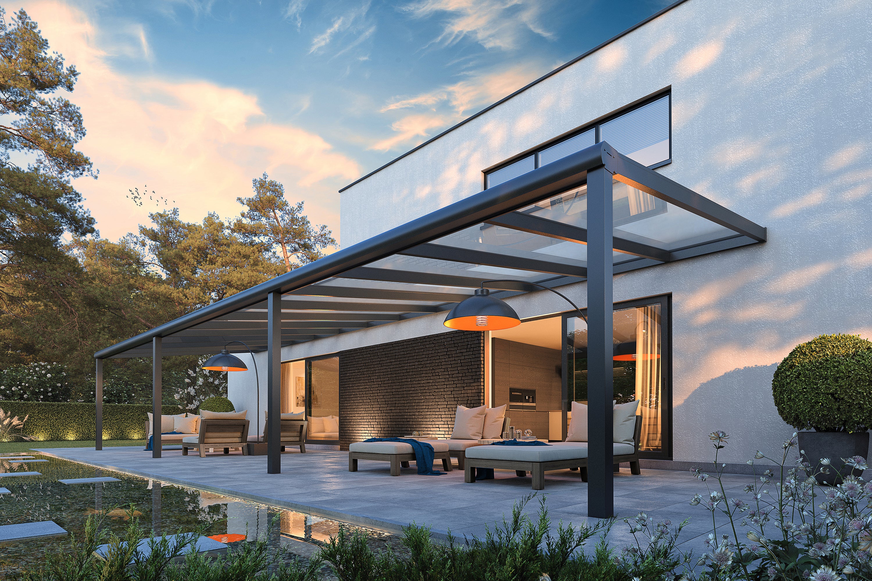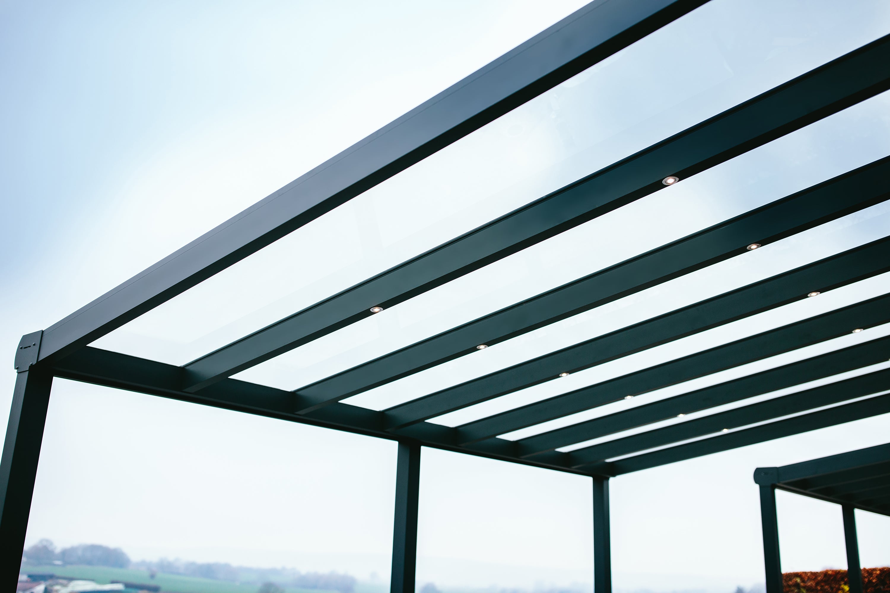 Unsere Terrassendächer bestehen aus robustem, pulverbeschichtetem Aluminium und Sicherheitsglas – langlebig, pflegeleicht und wetterbeständig.