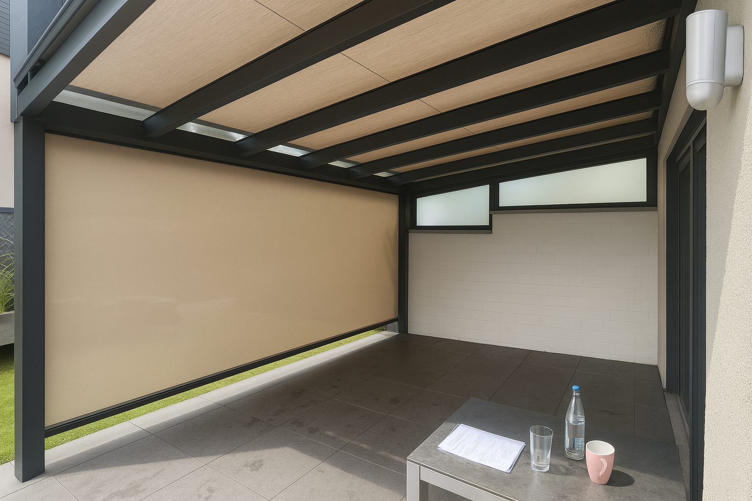 Unsere Terrassendächer bestehen aus robustem, pulverbeschichtetem Aluminium und Sicherheitsglas – langlebig, pflegeleicht und wetterbeständig.