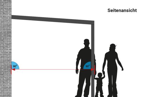 Bestimmen Sie die gewünschte Tiefe Ihres Terrassendachs. Berücksichtigen Sie auch hier, dass beim Ausmessen ein 90 Grad Winkel beachtet werden muss.