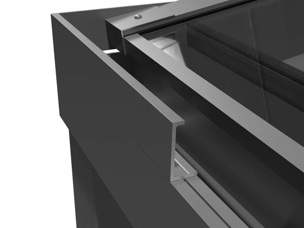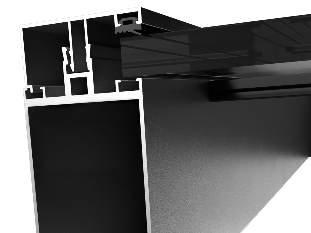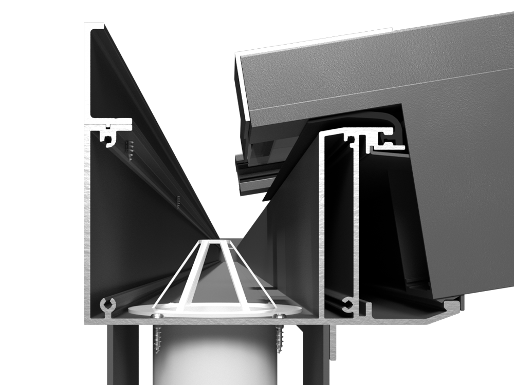 Die Rinnenprofil des TR10 erhält durch das Aufsatzprofil für die Rinne ein modernes Aussehen. Die Abdeckung wird an der Rinne befestigt und nicht sichtbar verschraubt.